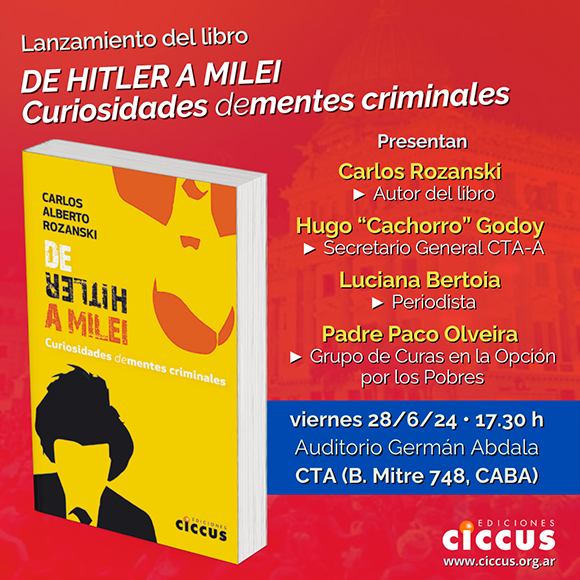 🗓️ Viernes 28/6/24 a las 17.30 h en el Auditorio Germán Abdala de la CTA Autónoma (B. Mitre 748, CABA).