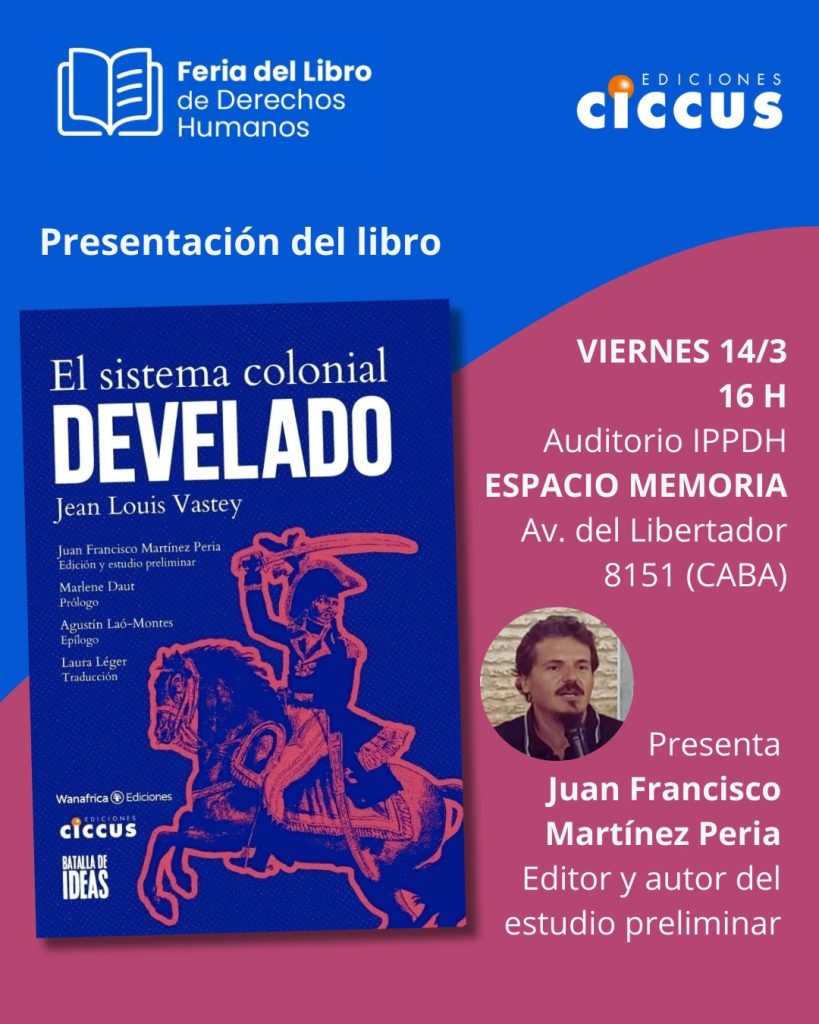 Mar 12, 2025 #Derechos Humanos, #Espacio Memoria, #Ferias, #Haití, #Jean Louis Vastey, #Juan Francisco Martínez Peria, #Libros, #Nuestramérica, #Sistema colonial develado