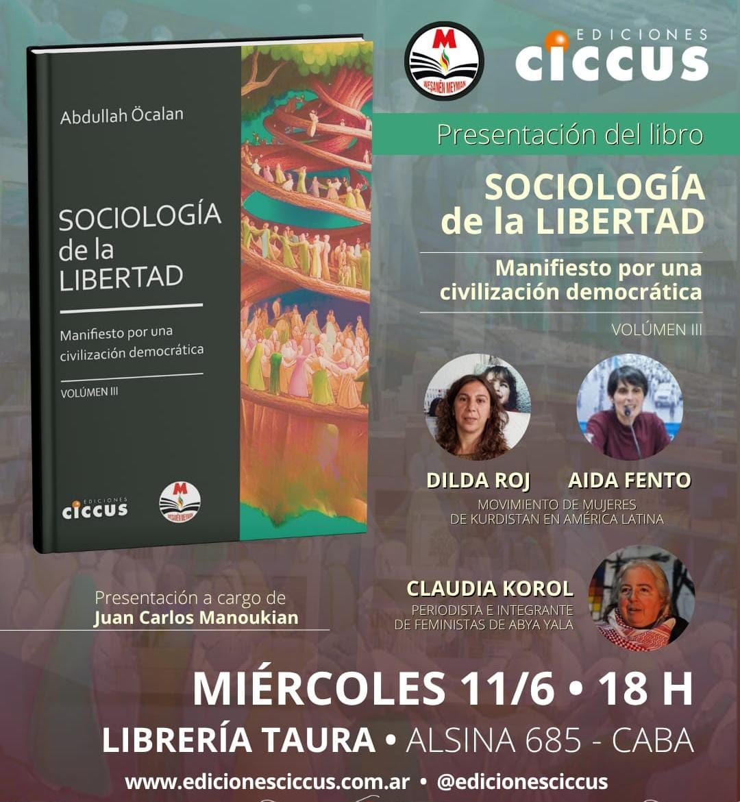 Se trata del tercer tomo del Manifiesto por una Civilización Democrática del líder kurdo Abdullah Öcalan. Será el miércoles 11 de junio a las 18 h en Espacio Taura (Alsina…