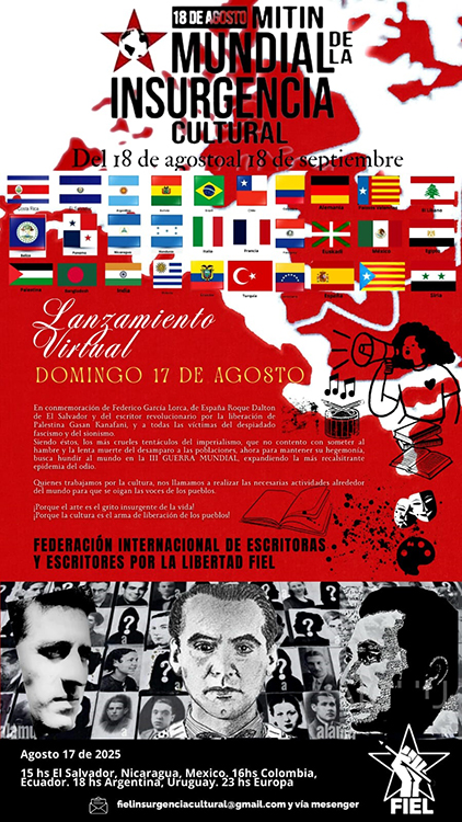 El mitín mundial de insurgencia cultural, a celebrarse el 18 de agosto de 2025, dará inicio a unas jornadas virtuales que se extienden hasta el 18 de septiembre e involucran a escritores de más de treinta países.