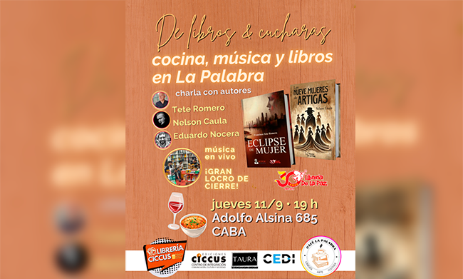 Cocina, música y libros en la palabra: Este jueves 11/9 a las 19 h en Adolfo Alsina 685, CABA.